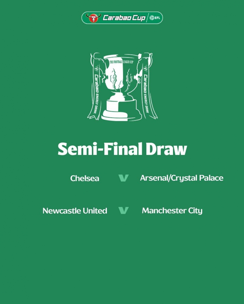 Kết quả bốc thăm bán kết cúp Liên đoàn - Ảnh: @Carabao_Cup