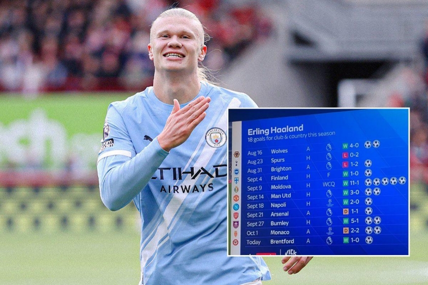 Erling Haaland đã thiết lập một kỷ lục đáng nể sau khi ghi bàn duy nhất giúp Manchester City đánh bại Brentford 1-0 ở vòng đấu mới nhất Premier League.