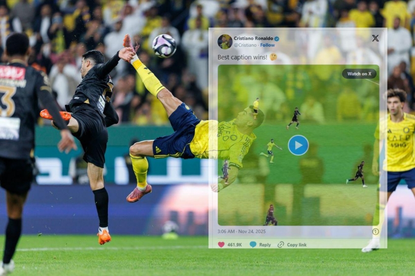 Ngay sau bàn thắng mãn nhãn, Ronaldo nhanh chóng đăng tải đoạn video lên mạng xã hội, kèm dòng chú thích ngắn gọn: “Best caption wins!” (“Ai đặt caption hay nhất sẽ thắng!”). Bài đăng trên X (Twitter) đạt hơn một triệu tương tác chỉ trong chưa đầy 30 phút và lan truyền mạnh mẽ trên các nền tảng.
