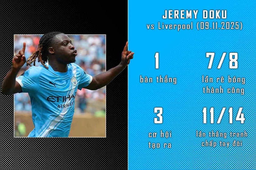 Jérémy Doku không chỉ là một tài năng trẻ đầy tốc độ, mà còn là một cầu thủ có tư duy chiến thuật sắc bén và khả năng đưa ra quyết định chính xác. Màn trình diễn 'thượng thừa' này không chỉ là một chiến thắng cho Man City mà còn là lời khẳng định đanh thép về vị thế của Doku: anh đang trên đường trở thành cầu thủ chạy cánh hàng đầu thế giới. Với phong độ này, những màn trình diễn cá nhân xuất sắc như thế này chắc chắn sẽ là hình ảnh thường thấy của ngôi sao người Bỉ trong tương lai gần.