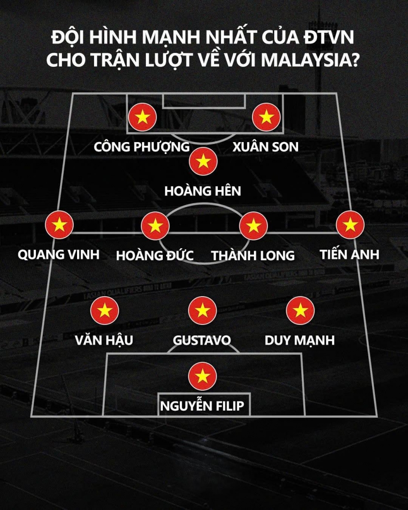 Trên hàng công, cặp song sát Công Phượng - Xuân Son được kỳ vọng tái hiện phong độ đỉnh cao, với Hoàng Hên chơi ngay phía sau như một “số 10” kiến thiết lối chơi. Đây có thể coi là đội hình mạnh nhất mà ĐT Việt Nam sở hữu trong nhiều năm trở lại đây, kết hợp hài hòa giữa kinh nghiệm, kỹ thuật và sức chiến đấu phi thường.