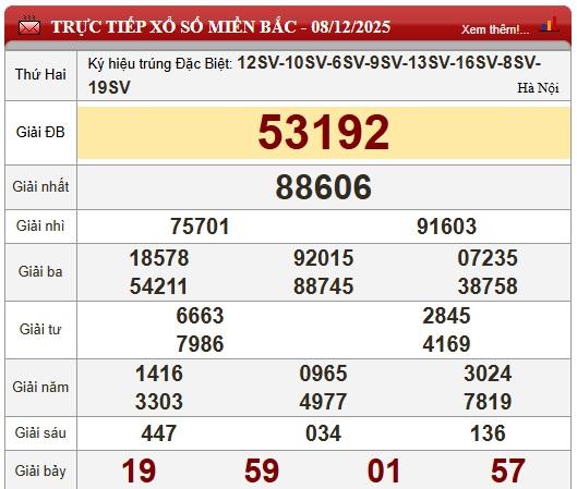 XSMB 9/12/2025 - Kết quả xổ số miền Bắc hôm nay 9/12/2025