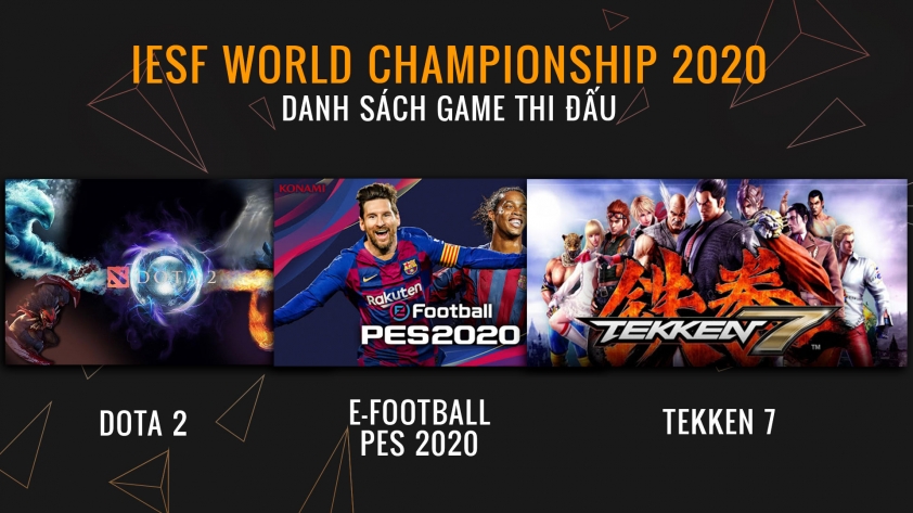 Giải Thể thao điện tử vô địch thế giới 2020 – IeSF Esports World Championship 2020 vòng loại Đông Nam Á sẽ diễn ra từ ngày 20/10 - 22/11 với 3 bộ môn PES, Tekken 7 và DOTA 2.
