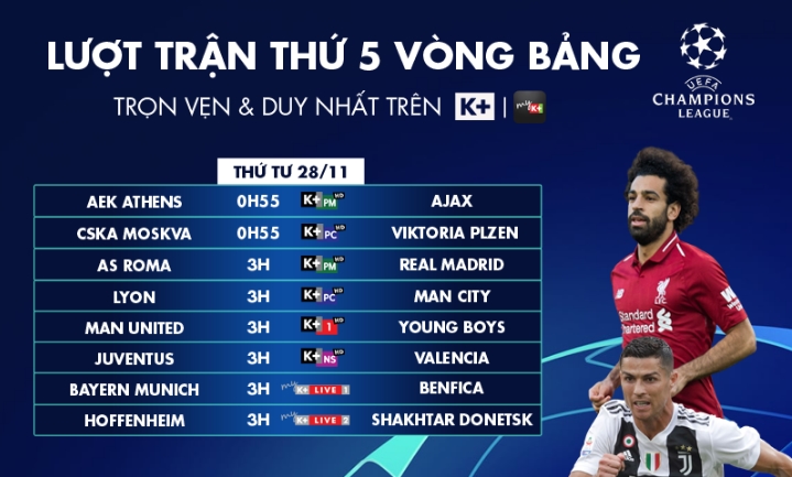 | 8 | 03h00 | Roma vs Real Madrid | K+PM, Thethao247 | XEM TẠI ĐÂY |