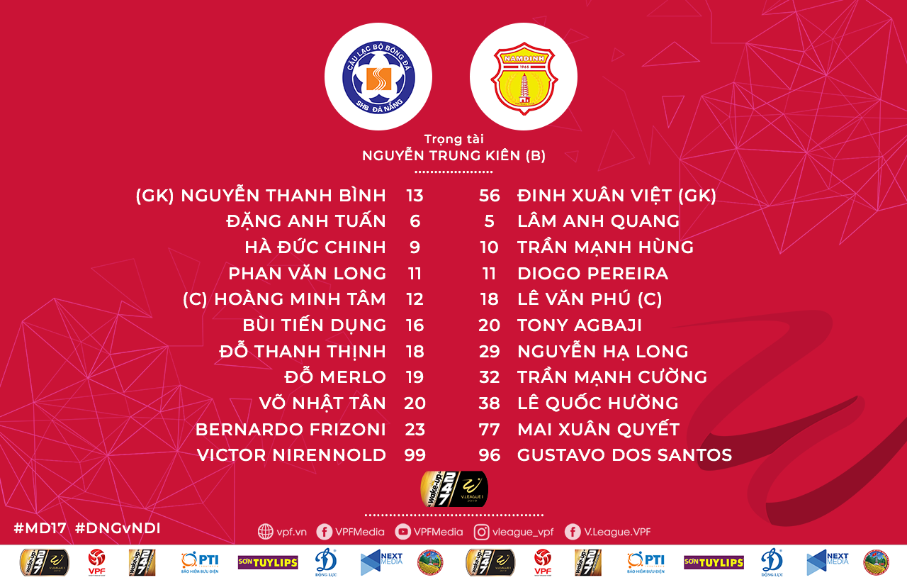 Tại vòng 17 V.League 2019, SHB Đà Nẵng đã tiếp đón Nam Định trên sân Hòa Xuân. Dù được đánh giá cao hơn, HLV Đức Thắng vẫn tung ra đội hình rất mạnh với những Tiến Dụng, Thanh Thịnh, Minh Tâm, Đức Chinh hay Đỗ Merlo.