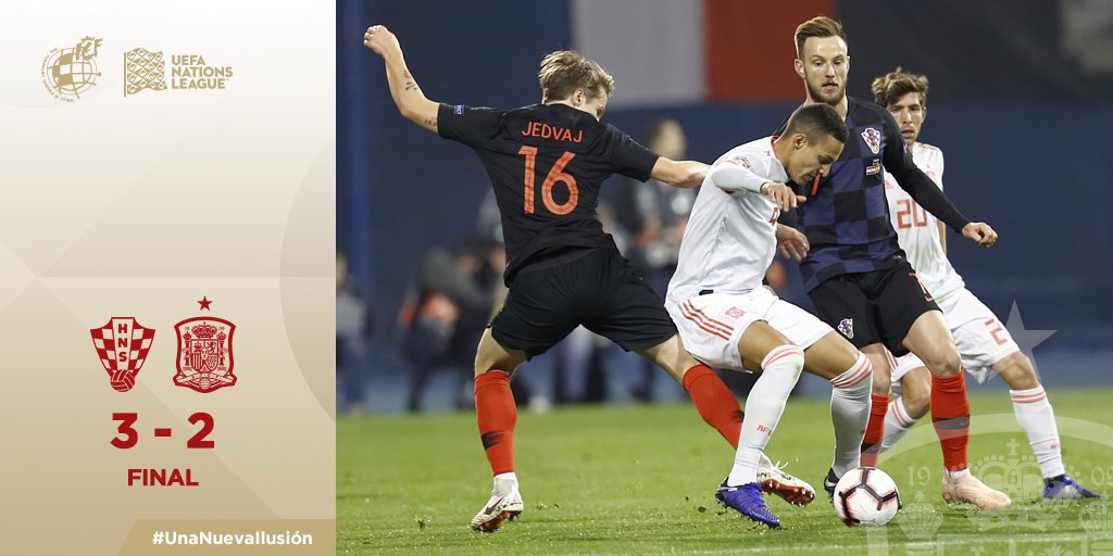 Những phút cuối trận, Croatia dồn lên tấn công và họ đạt được kết quả khi thủ môn De Gea phải đấm bóng từ cú sút của Josip Brekalo, Jedvaj có mặt kịp thời sút bồi ấn định chiến thắng 3-2.