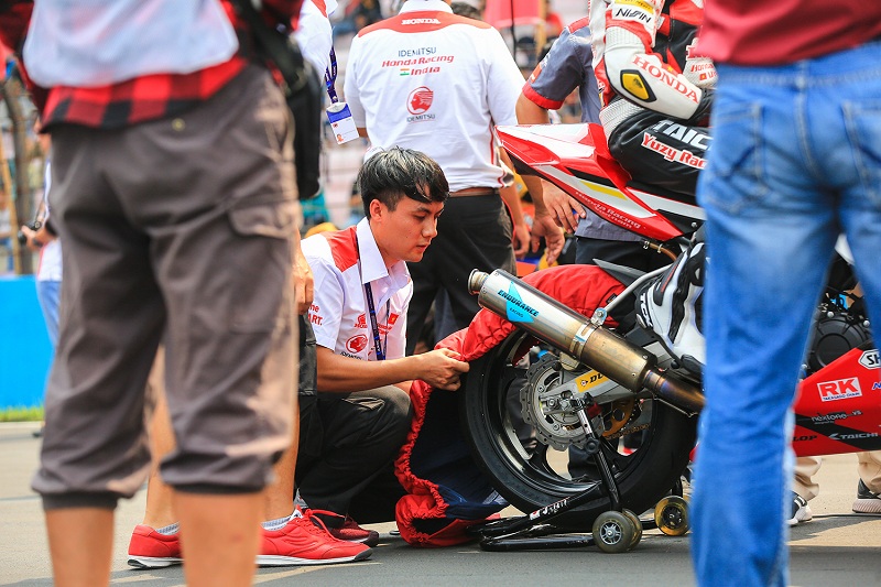 Nội dung UB150: Hai kỹ thuật viên của đội Honda Việt Nam Racing ở nội dung này gồm anh Trần Trung Dũng và anh Phạm Văn Tân.