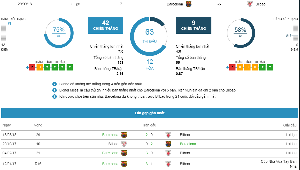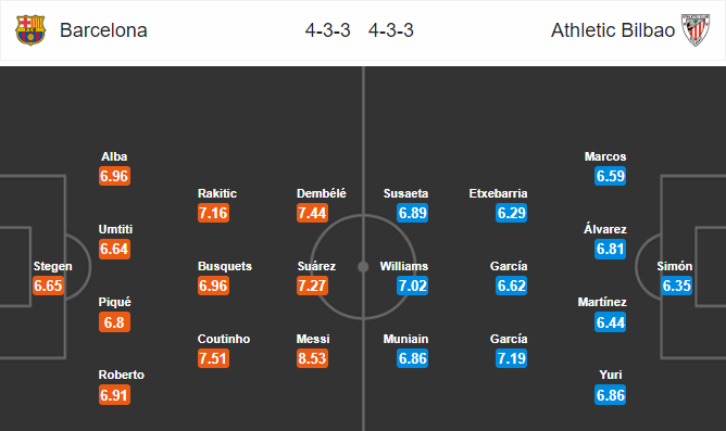 Barca đang khiến người hâm mộ khá thất vọng với những kết quả gần đây ở đấu trường La Liga. Thất bại trước Leganes hồi giữa tuần thực sự là một thất bại không thể chấp nhận được với người hâm mộ xứ Catalan. Chính vì vậy, trận đấu với Bilbao ở vòng đấu này là cơ hội để HLV Valverde sửa sai khi được thi đấu trên sân nhà. Bilbao được xem là một trong những đối thủ ưa thích nhất của Barca. Mùa trước, trong 2 lần chạm trán Bilbao thì Valverde đều thắng với cùng tỷ số 2-0. Tính rộng ra, Barca thắng 9 trong 10 lần chạm trán Bilbao gần nhất.