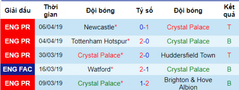 Lịch sử kèo tỷ số 5 trận gần đây của Crystal Palace vs Man City