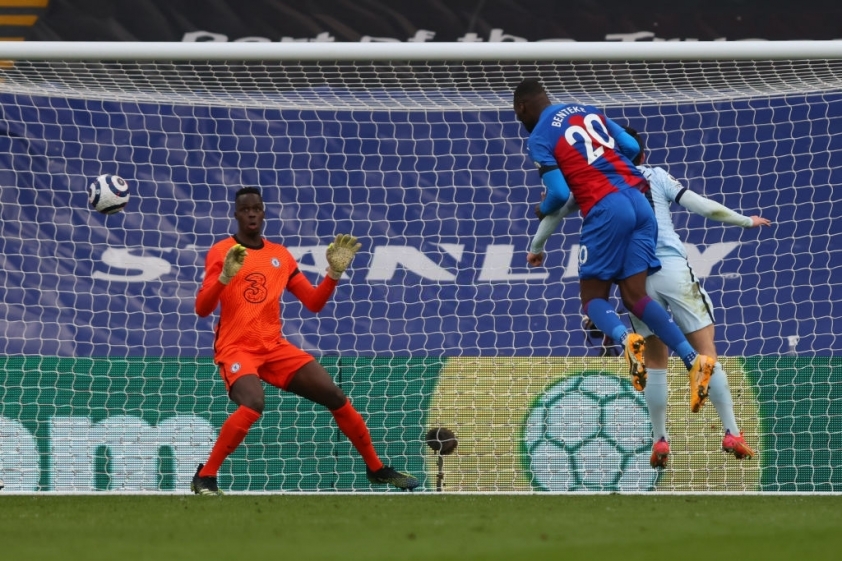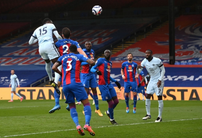 Mason Mount đá phạt thuận lợi để Zouma bật cao đánh đầu tung lưới Crystal Palace, nâng tỷ số lên 3-0 cho đội khách.