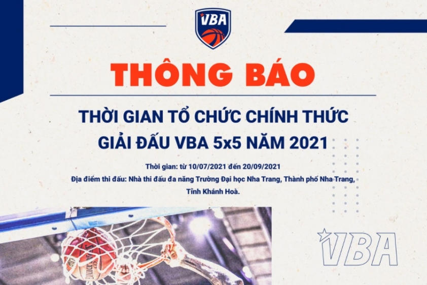 Từ 10/07/2021 đến 20/09/2021, giải bóng rổ VBA 2021 chính thức diễn ra theo mô hình hoàn toàn mới tại thành phố biển Nha Trang.