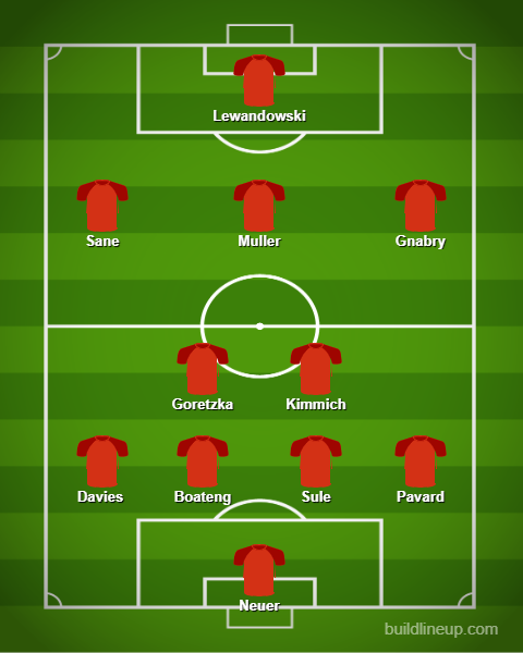 Ở trận đấu này, niềm hy vọng được đặt vào bộ đôi Sane - Gnabry. Đây cũng là những "cải tiến" rõ rệt nhất so với chính Bayern Munich đã lên ngôi tại Champions League tháng trước.
