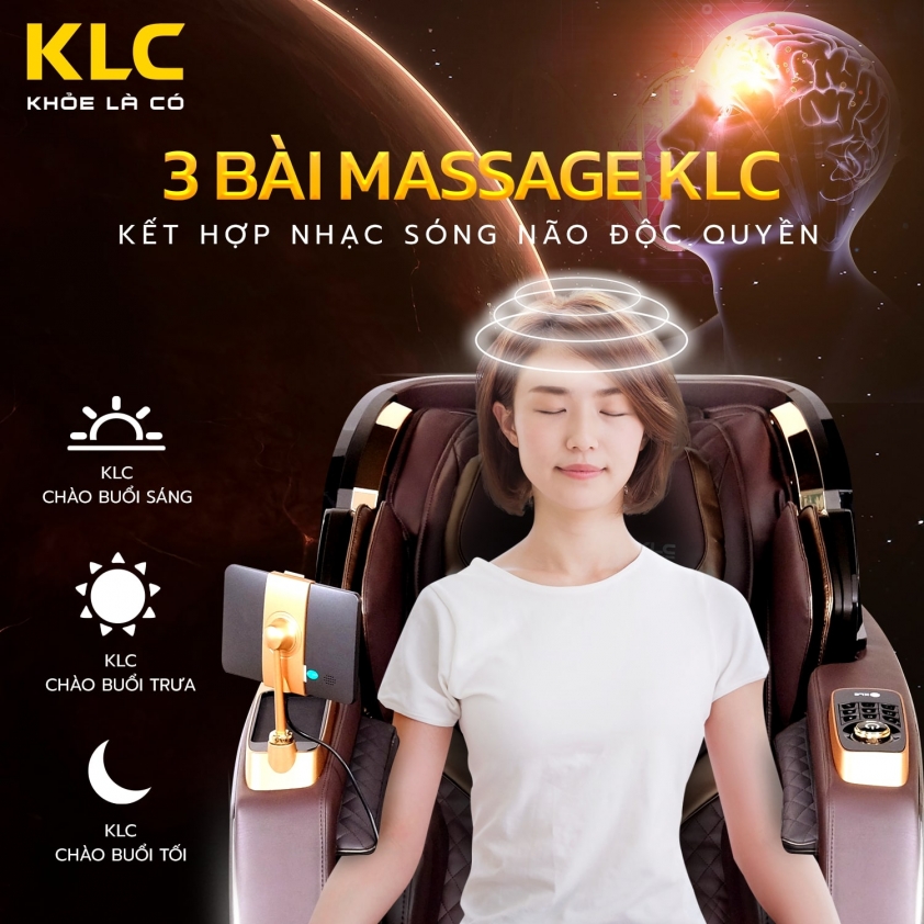 KLC đã cho ra mắt 3 bài massage mang tên thương hiệu của mình kết hợp nhạc sóng não độc quyền: KLC, Chào buổi sáng; KLC, Chào buổi trưa và KLC, chào buổi tối. Với mỗi bài tập bạn có thể lựa chọn bài phù hợp với từng thời điểm trong ngày. Nhờ đó, Sản phẩm mang đến cho người dùng những cảm giác khác biệt và tuyệt vời mà chỉ tìm thấy ở KLC K99 mà thôi.