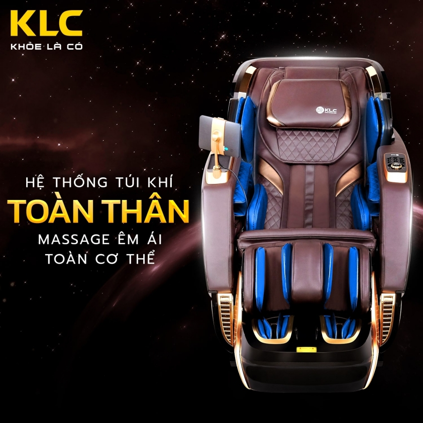 Đầu năm 2022 thương hiệu Ghế Massage Chính Hãng KLC đã chính thức ra mắt siêu phẩm ghế massage KLC K99 - “Kiệt tác hoàn mỹ” 2022 của KLC Việt Nam. KLC K99 không chỉ được thiết kế mạnh mẽ, sang trọng thách thức mọi giới hạn thẩm mỹ mà còn sở hữu một loạt tính năng, chế độ massage độc quyền mà không chiếc ghế nào trên thị trường có được.