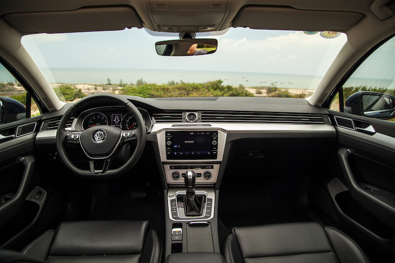 Không gian nội thất của Passat đầy ấn tượng với ghế trước chỉnh điện 14 hướng và riêng ghế tài xế còn có thêm chức năng massage và nhớ vị trí. Các tiện nghi khác có thể kể đến như hệ thống giải trí màn hình cảm ứng lớn 8-inch và cốp xe rộng rãi đủ cho 4 túi golf.