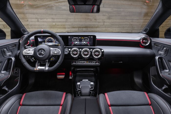 Chất thể thao của Mercedes CLA45 4Matic 2020 được thể hiện rất rõ nét ở thiết kế khoang lái với các chi tiết, hốc gió và đường viền được bố trí, sắp xếp theo phong cách quen thuộc.
