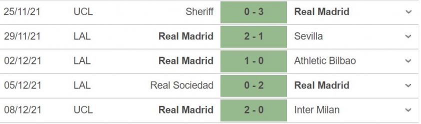 - Real Madrid đang có chuỗi 12 trận bất bại với 11 chiến thắng và 1 trận hòa