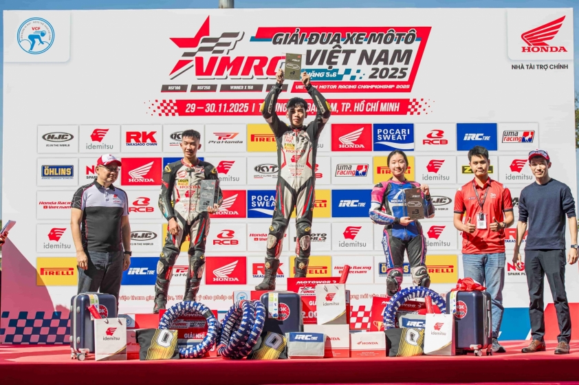 Giải đua xe Mô tô Việt Nam 2025 khép lại trong bầu không khí rực rỡ và đầy cảm xúc. Một mùa giải bùng nổ, nhiều dấu ấn và tràn ngập tinh thần thể thao đã kết thúc thành công tốt đẹp.Chặng 6 VMRC cũng diễn ra rất nhiều hoạt động bên lề hấp dẫn như Kid training (trải nghiệm xe CRF50), Balance bike contest, tham gia chơi và nhận quà tại các gian hàng trải nghiệm của nhà tài trợ và đặc biệt, chiếc Winner R đến từ nhà tài trợ Honda Việt Nam đã tìm thấy chủ nhân.