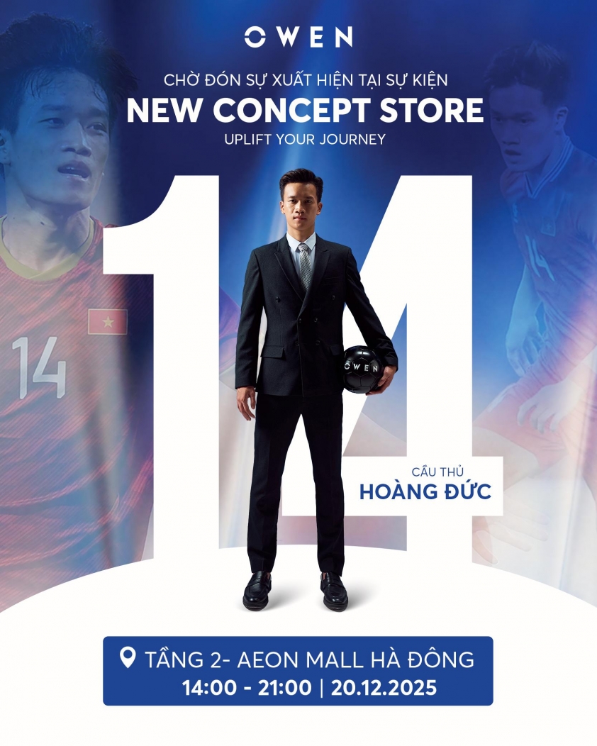 Với sự xuất hiện của “Quả Bóng Vàng” Nguyễn Hoàng Đức tại không gian mua sắm hoàn toàn mới, sự kiện của OWEN hứa hẹn sẽ là điểm hẹn đáng chú ý dịp lễ hội cuối năm. Đăng ký tham gia ngay để không bỏ lỡ cơ hội trải nghiệm sự kiện và đồng hành cùng OWEN trên hành trình nâng tầm phong cách cá nhân.