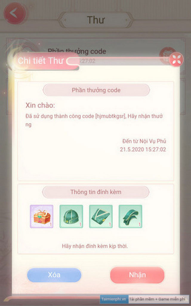 Bước 3: Chuyển qua mục Nhận và nhập code