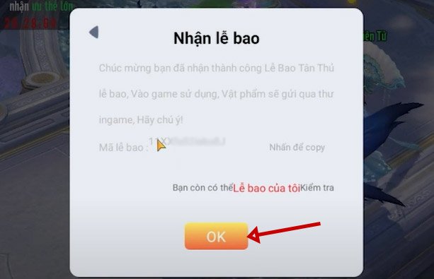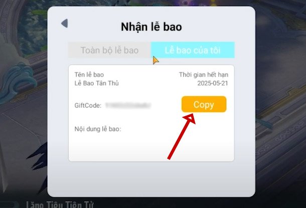 Bước 4: Copy đoạn code từ Lễ Bao Tân Thủ và vào phần Lễ Bao Của Tôi để nhập code và nhận thưởng.
