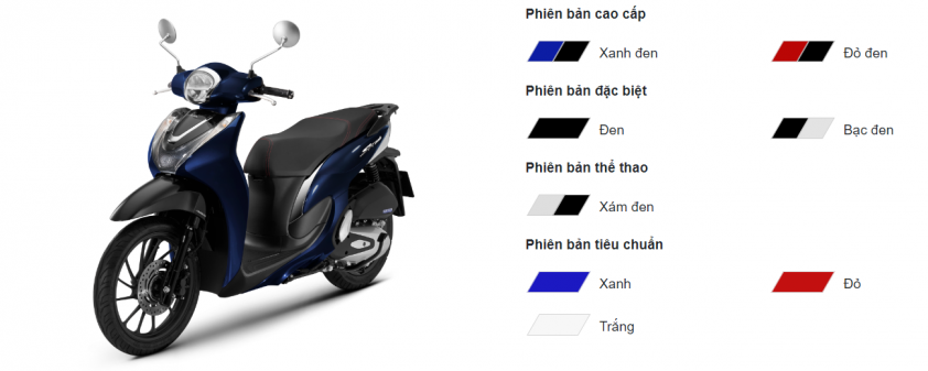Các phiên bản xe SH Mode 2022 | Các tùy chọn màu sắc tương ứng |