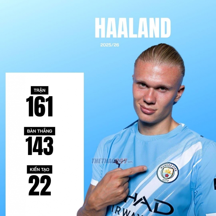 Về phía Haaland, tiền đạo này đang thể hiện phong độ ấn tượng ở mùa giải này. Sau 11 lần ra sân tại Ngoại hạng Anh mùa này, tiền đạo người Na Uy đã ghi đến 14 bàn thắng, bao gồm pha lập công mới đây vào lưới Liverpool, qua đó củng cố vững chắc vị trí dẫn đầu trong cuộc đua cho danh hiệu Vua phá lưới. Tính trên mọi đấu trường, Haaland đã đến 19 bàn thắng sau 15 lần góp mặt trên mọi đấu trường.