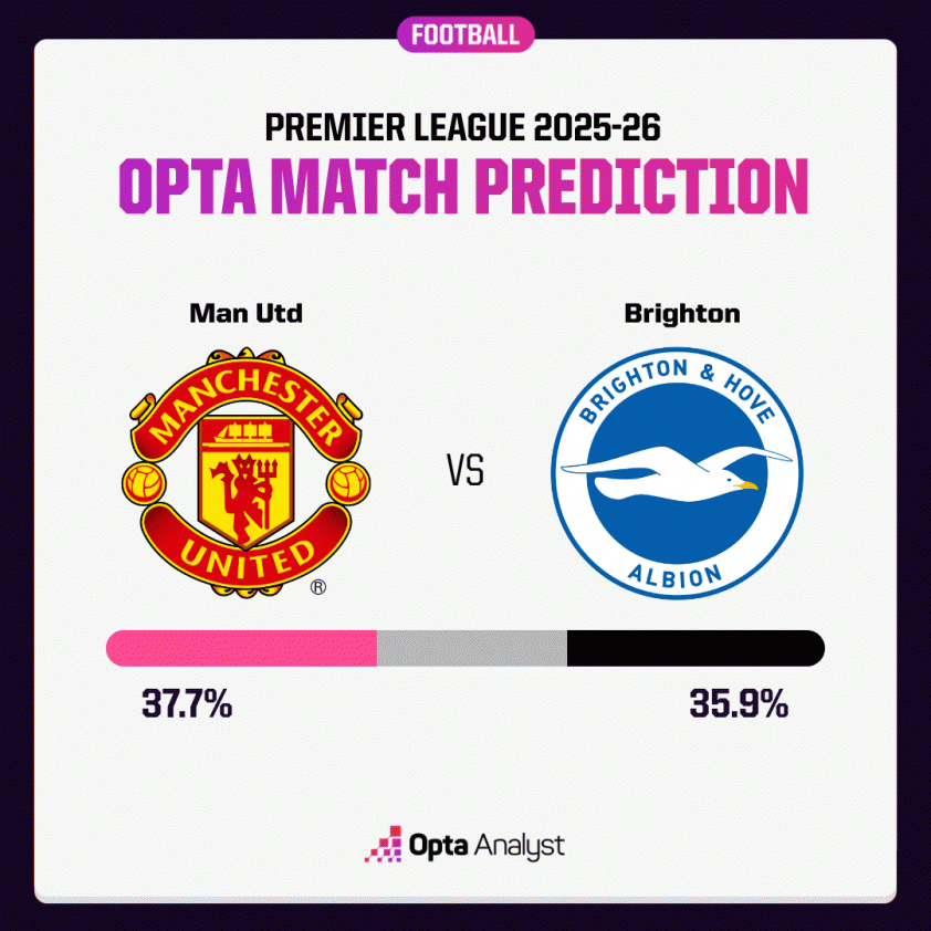 Điều này đã được Opta chỉ rõ, khi siêu máy tính này dự đoán Man Utd sẽ giành chiến thắng trong 37,7% trên tổng số 10.000 kịch bản được chạy thử trước trận. Ở chiều ngược lại, Brighton vẫn có 35,9% cơ hội nối dài chuỗi thắng lên con số bốn tại Old Trafford, trong khi khả năng trận đấu khép lại với tỷ số hòa được dự đoán ở mức 26,4%.