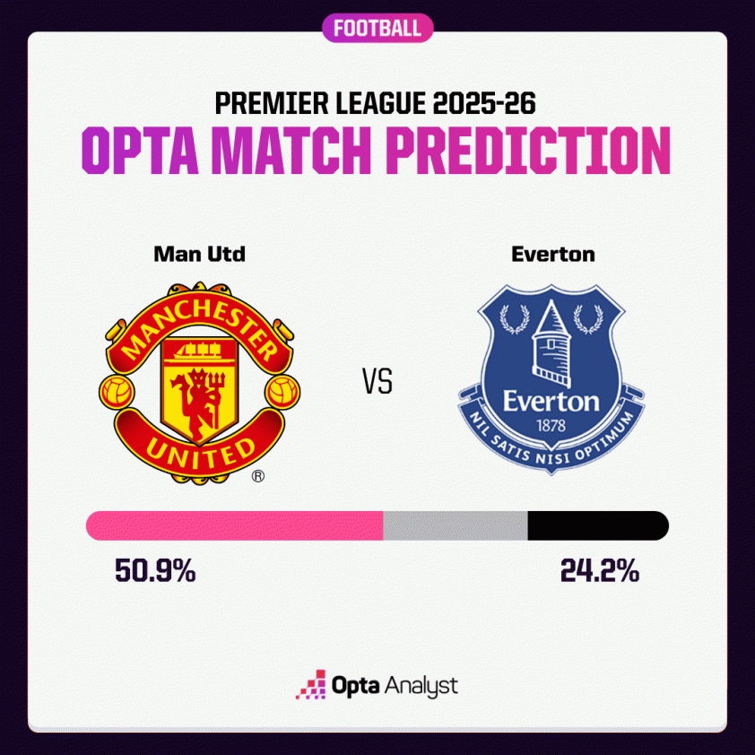 Siêu máy tính Opta đã đưa ra những nhận định và dự đoán về màn đối đầu giữa Man Utd và Everton tại vòng 12 Ngoại hạng Anh.