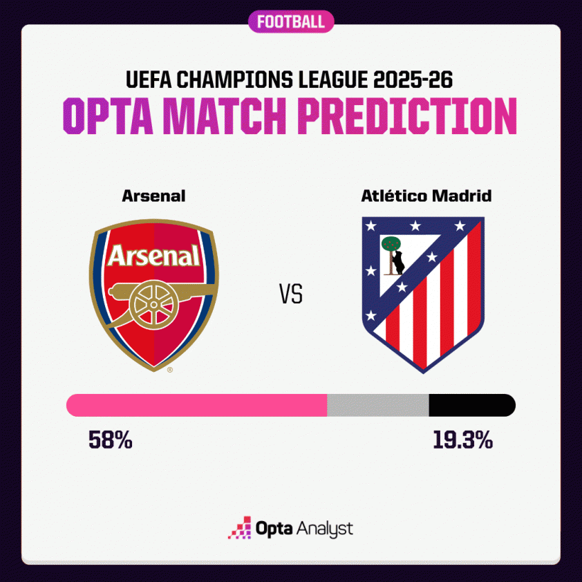 Siêu máy tính Opta đã đưa ra những nhận định và dự đoán về trận đấu giữa Arsenal và Atletico Madrid tại Champions League.