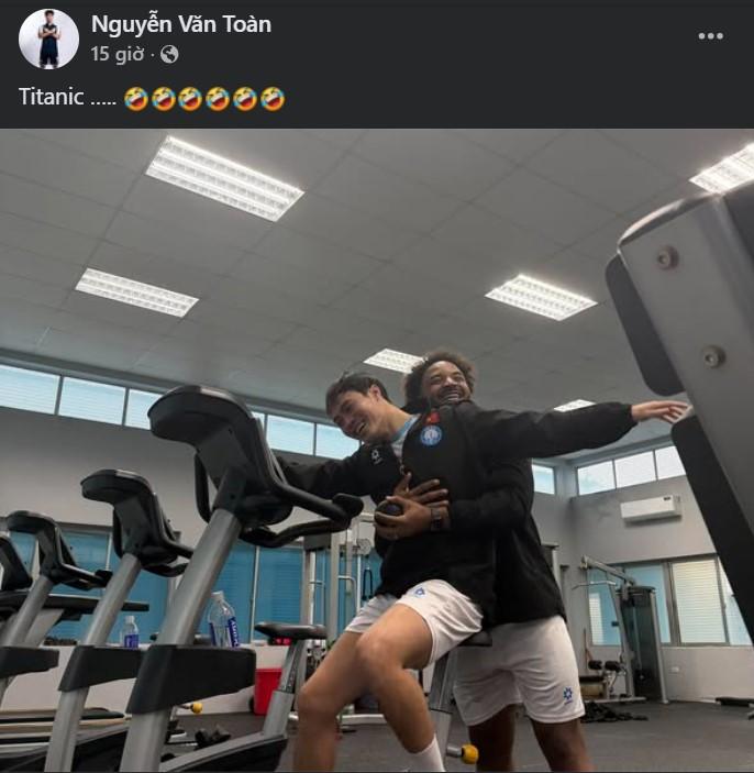 Theo đó, Văn Toàn đã đăng tải bức ảnh tập luyện cùng Xuân Son trong phòng gym, cùng dòng trạng thái "Titanic …..". Điều khiến NHM cảm thấy phấn khích chính là việc Xuân Son đã ôm lấy người đàn anh đầy thân mật, như để tái hiện hình ảnh biểu tượng trong bộ phim Titanic giữa hai nhân vật Jack và Rose.