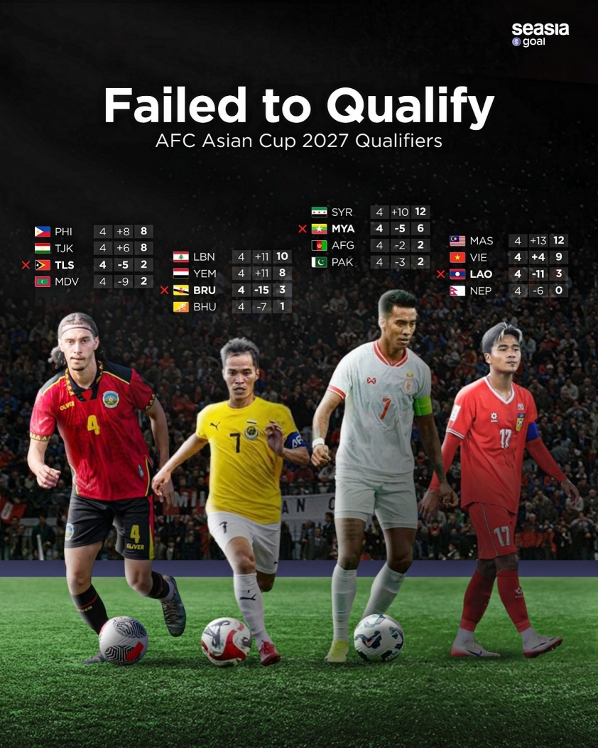 Bốn đội tuyển của Đông Nam Á đã chính thức hết cơ hội góp mặt tại VCK Asian Cup 2027.