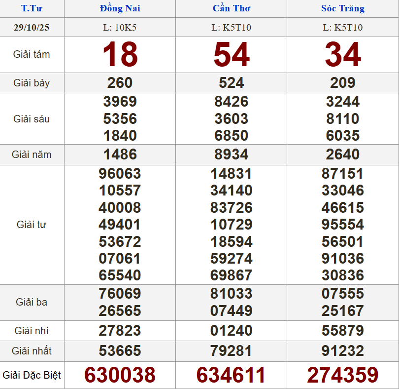 Kết quả xổ số miền Nam (XSMN) ngày 29/10