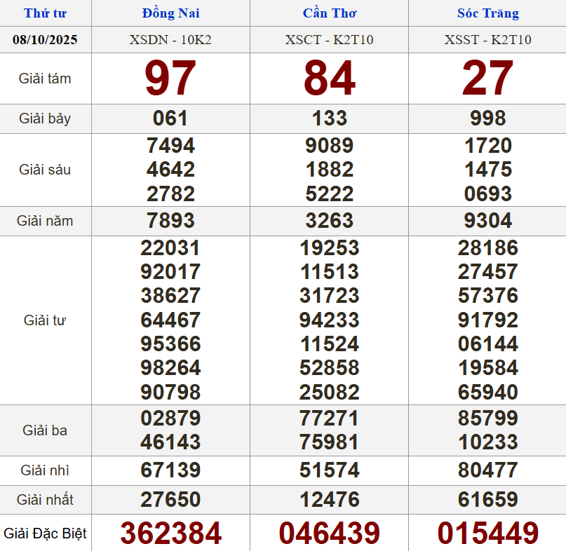XSMT 8/10/2025 - Kết quả xổ số miền Trung hôm nay 8/10/2025