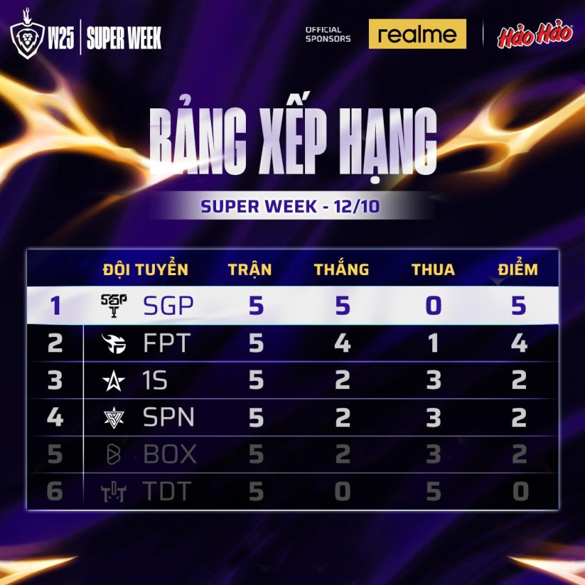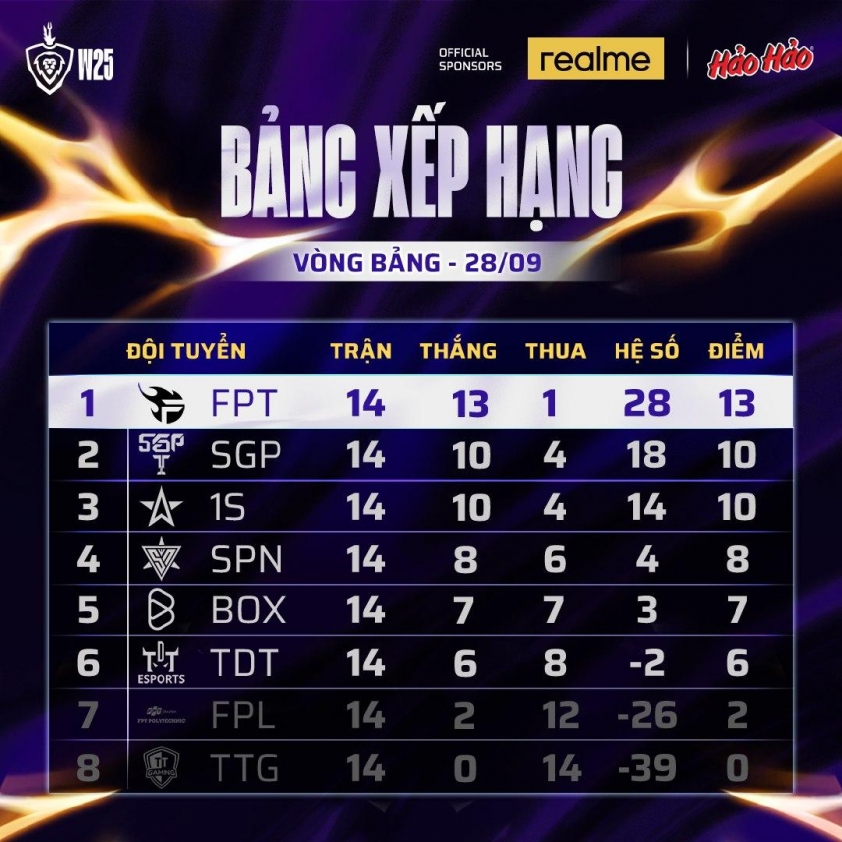 Cập nhật bảng xếp hạng Đấu Trường Danh Vọng Mùa Đông 2025, bộ môn Liên Quân Mobile.