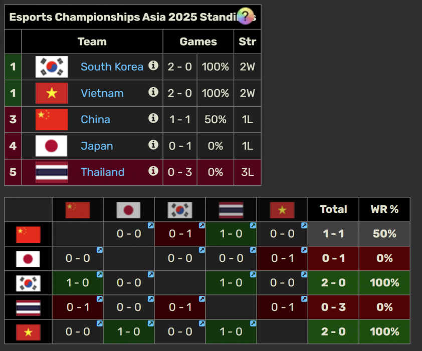 Cập nhật bảng xếp hạng ECA 2025 LMHT mới nhất - Thứ hạng của đội tuyển Việt Nam.