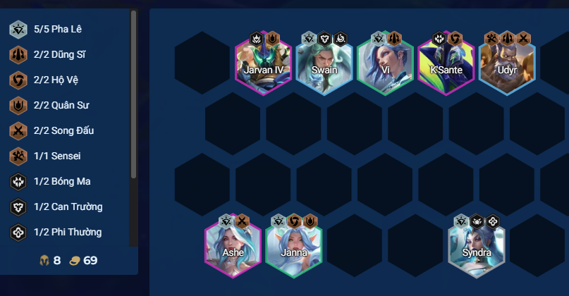 - Nếu không có lõi kinh tế, không nên chơi Ashe Pha Lê vì đội hình cần rất nhiều tiền