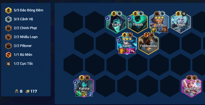 Cách chơi đội hình Đảo Bóng Đêm Reroll với chủ lực Gwen và Kalista trong DTCL Mùa 16.