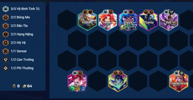 Jinx Vệ Binh Tinh Tú là một đội hình dễ chơi và ổn định để leo rank trong mùa 15. Với đa dạng buff từ VBTT và sát thương dồi dào từ Jinx - Varus - Seraphine, đội hình này luôn nằm trong top meta và được nhiều kỳ thủ ưa chuộng.