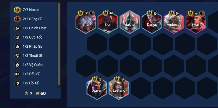 - Build 7 Noxus (chú ý các điều kiện mở khóa tướng ở trên)