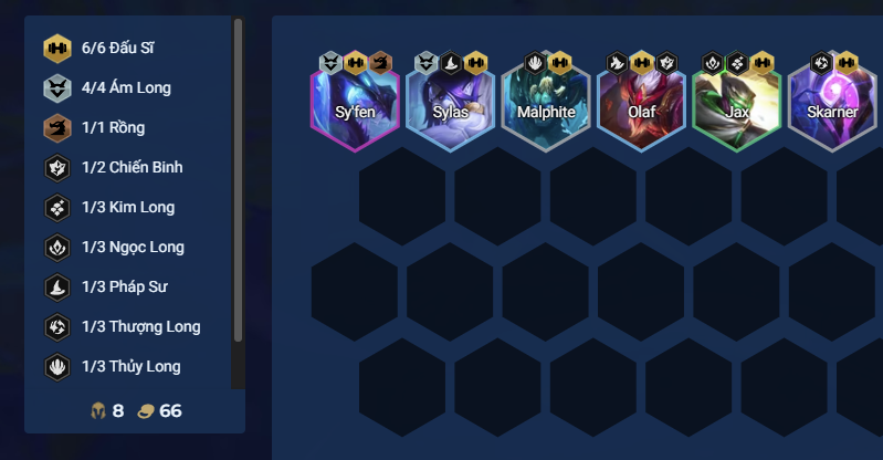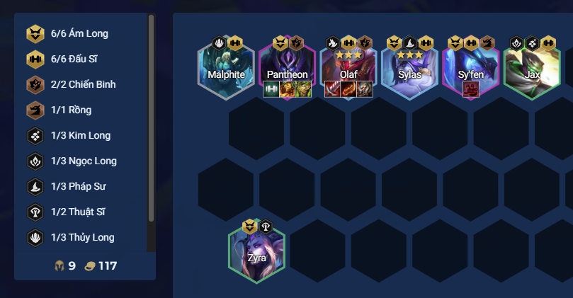 - Thứ tự ưu tiên trang bị: Olaf >>> Sylas / Pantheon >>> Sy'fen