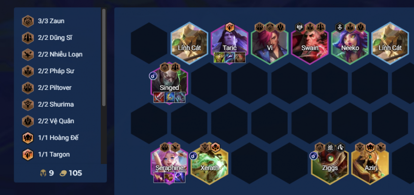 - Thứ tự ưu tiên trang bị: Seraphine >>> Taric >>> Singed