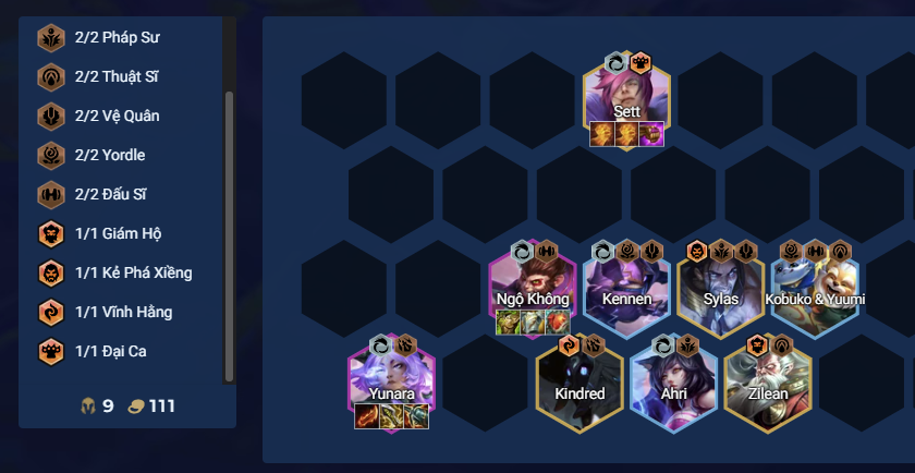 - Thứ tự ưu tiên trang bị: Sett >>> Yunara >>> Ngộ Không