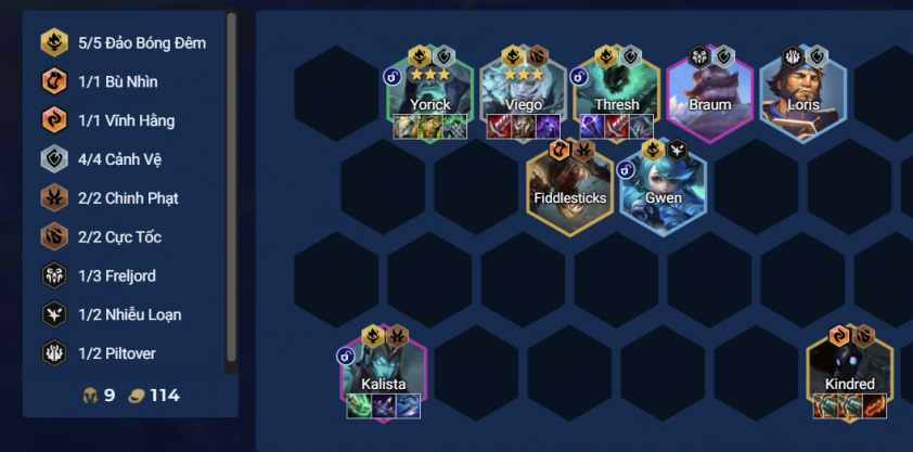 - Thứ tự ưu tiên trang bị: Viego >>> Yorick >>> Kalista >>> Thresh >>> Kindred