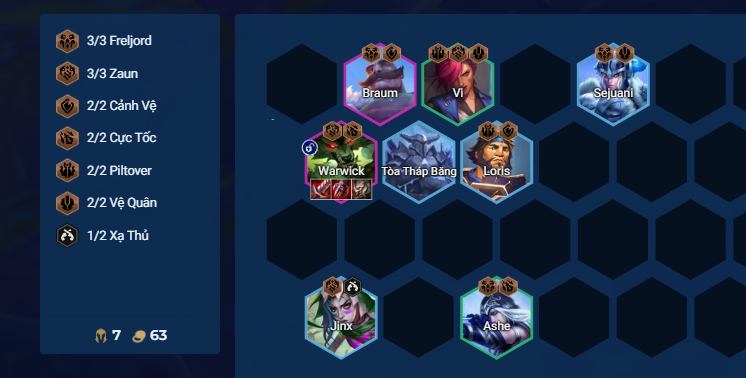 - Tốt nhất là bạn nên reroll khoảng 10-20 vàng ở cấp 7 để có tỷ lệ Jinx - Vi tốt nhất, đồng thời nâng cấp đội hình def máu