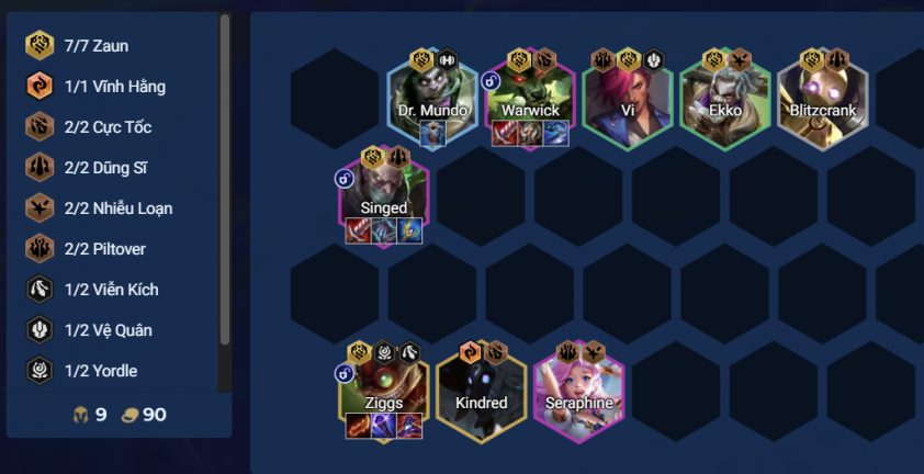 - Đội hình full Zaun cực mạnh khi có lõi công nghệ Silco Báo Thù, biến tất cả các vị tướng Zaun thành chiến binh cảm tử.