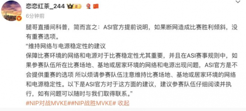 Tuy nhiên, bình luận viên 957 của LPL, người trực tiếp cast trận đấu, đã lên tiếng bảo vệ đội tuyển Trung Quốc. Trên livestream, anh công bố quy định chính thức của ban tổ chức ASI 2025, trong đó nêu rõ: