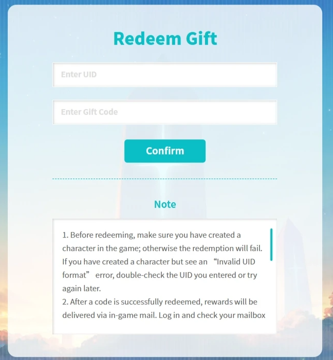 - Bước 3: Nhập code Stella Sora và ấn Confirm