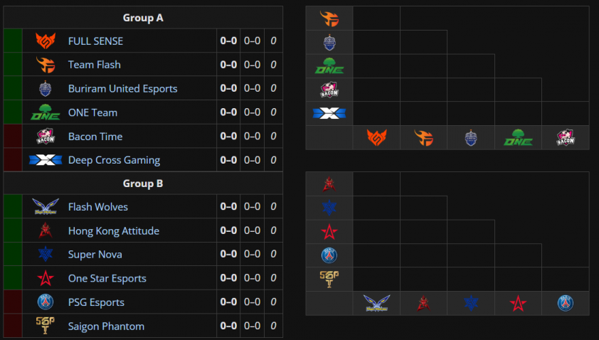Team Flash - nhà vô địch Liên Quân Mobile Việt Nam sẽ nằm ở bảng A, 3 đội Việt Nam còn lại được xếp chung vào bảng B.