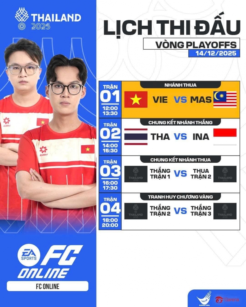Lịch thi đấu FC Online tại SEA Games 33 hôm nay 14/12